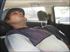Na zdjęciu: Pan Radosław był tak chory, że nie mógł nawet siedzieć w pozycji wyprostowanej w samochodzie.