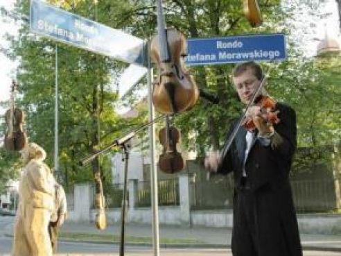Na zdjęciu: Przy akompaniamencie skrzypiec nadano najmniejszemu słupskiemu rondu imię.