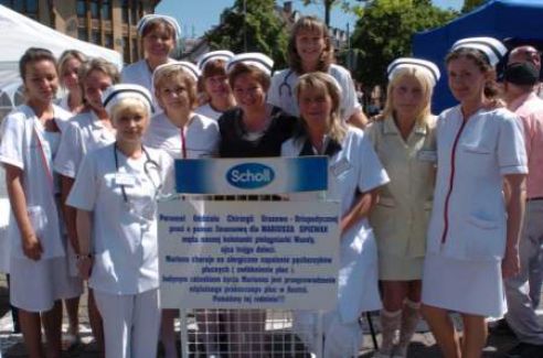 Pielęgniarki postawiły przed ratuszem dwa namioty - w jednym udzielały porad medycznych: m.in. można tam było zmierzyć sobie ciśnienie, poziom cholesterolu, tkanki tłuszczowej, cukru, porozmawiać na temat zdrowego odżywiania się, w drugim namiocie sprzedawały upieczone przez siebie ciasta. - W akcję zaangażowały się wszystkie koleżanki z pracy - opowiada oddziałowa. - Suma potrzebna na przeprowadzenie operacji jest ogromna. Tylko ta operacja, wykonana w Austrii może uratować życie mężowi naszej koleżanki, stąd nasza kwesta. W akcję pomocy włączyły się wszystkie koleżanki, a także dziewczyny uczące się zawodu w Akademii Pomorskiej, które zbierały pieniądze do puszek. Wszystkim, którzy zechcieli wesprzeć naszą koleżankę serdecznie dziękujemy. Pielęgniarkom udało się zebrać 1200 zł ze sprzedaży ciast i kawy, oraz 1990 zł z kwesty do puszek.