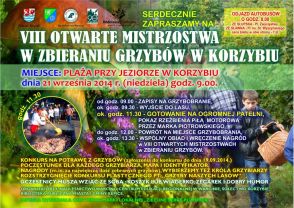Na ten dzień zaplanowany jest konkurs kulinarny na najlepszą potrawę przygotowaną z grzybów, w którym udział może wziąć każdy. Na miejscu odbędzie się również pokaz rzeźbienia piłą motorową w wykonaniu Marka Piotrowskiego.