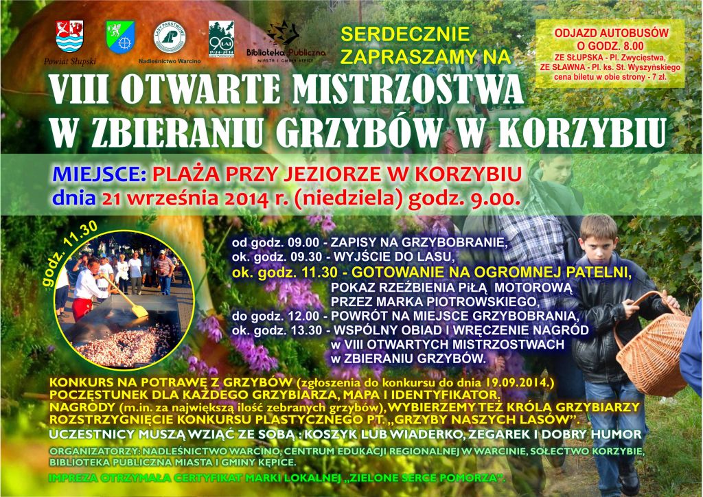 Mieszkańcy Słupska i Sławna będą mogli dojechać na grzybobranie specjalną linią autobusową, która wyruszy o godz. 8.00 w Słupsku z Placu Zwycięstwa a w Sławnie z Placu ks. St. Wyszyńskiego.