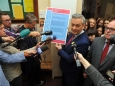Prezydent miasta Robert Biedroń wieszając w II Liceum Ogólnokształcącym przy ul. Mickiewicza pierwszą planszę z...
